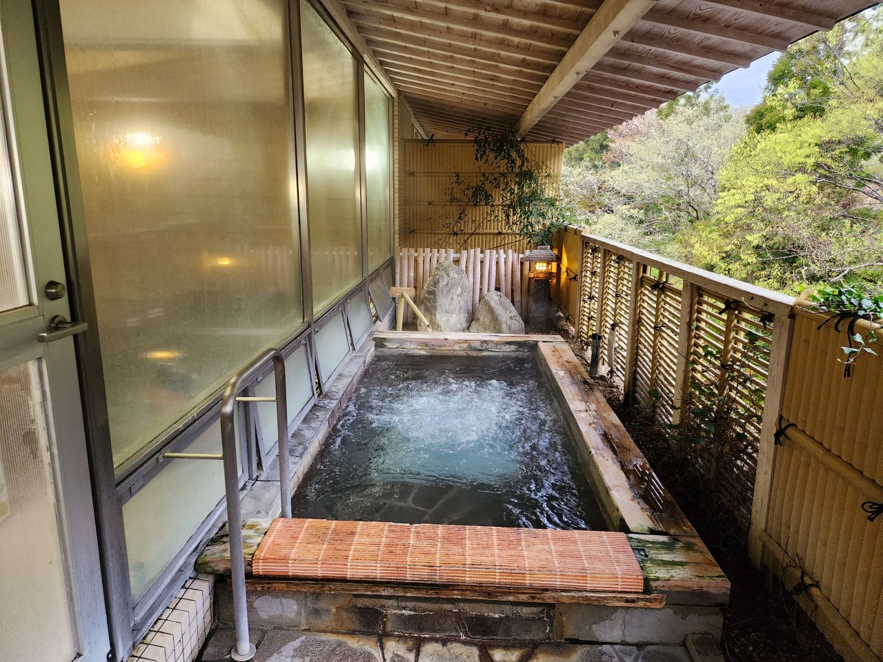 온천 호텔에서 온천욕으로 여행의 피로를 풀 수 있음.