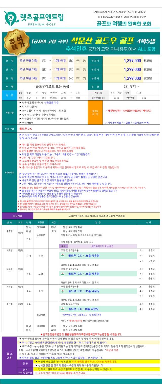 골드우 조기예약특전 - 올포함 1,299,000원