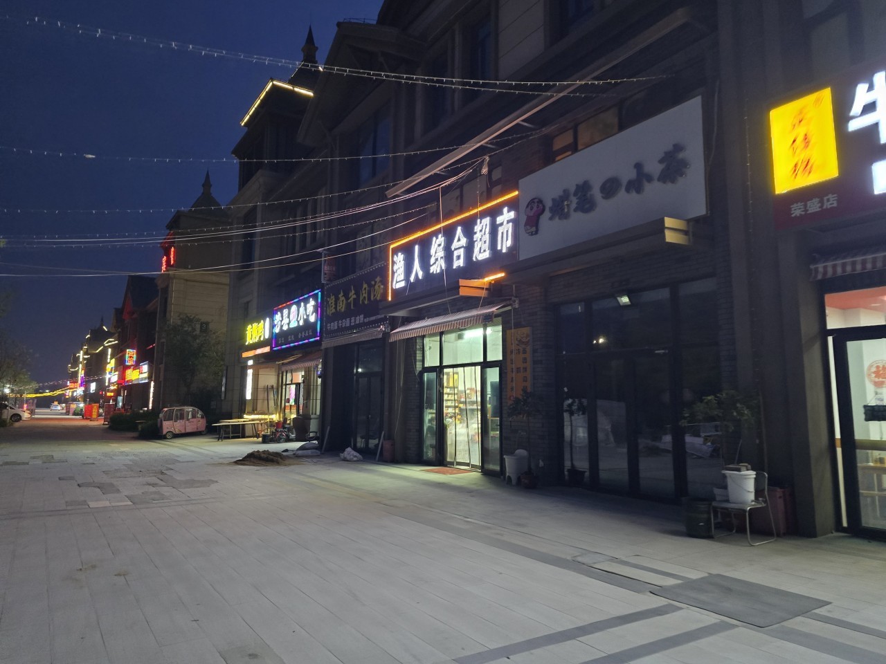 아카디아 호텔에서 나와서 도보 2~3분 거리에 양꼬치, 마트 등 상가들이 즐비해 있습니다.