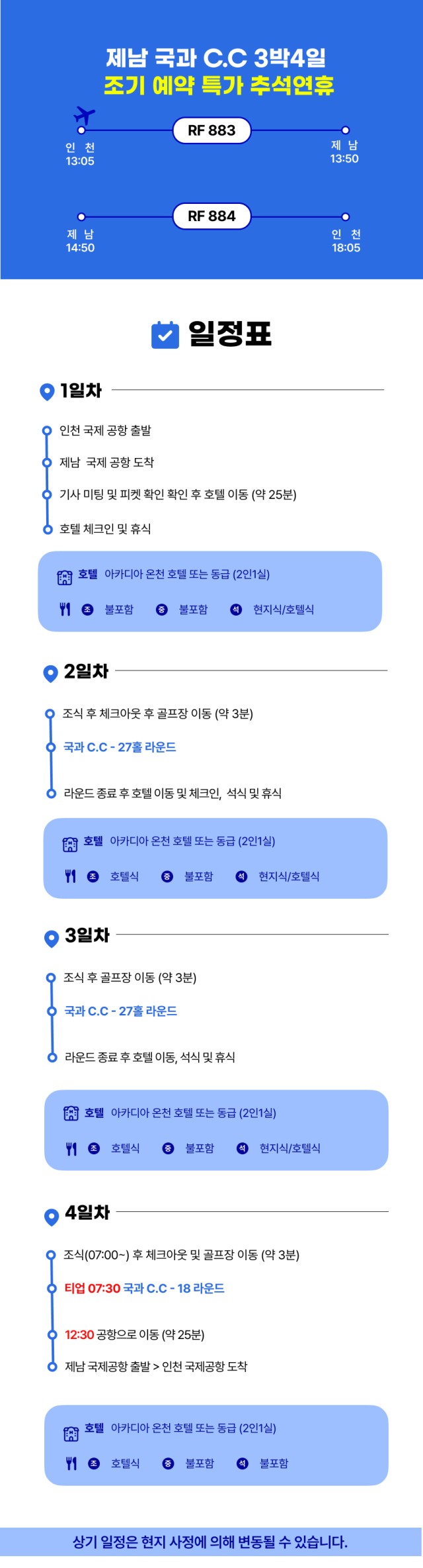 ■ 아카디아온천호텔(골프텔) 혹은 동급 2인1실