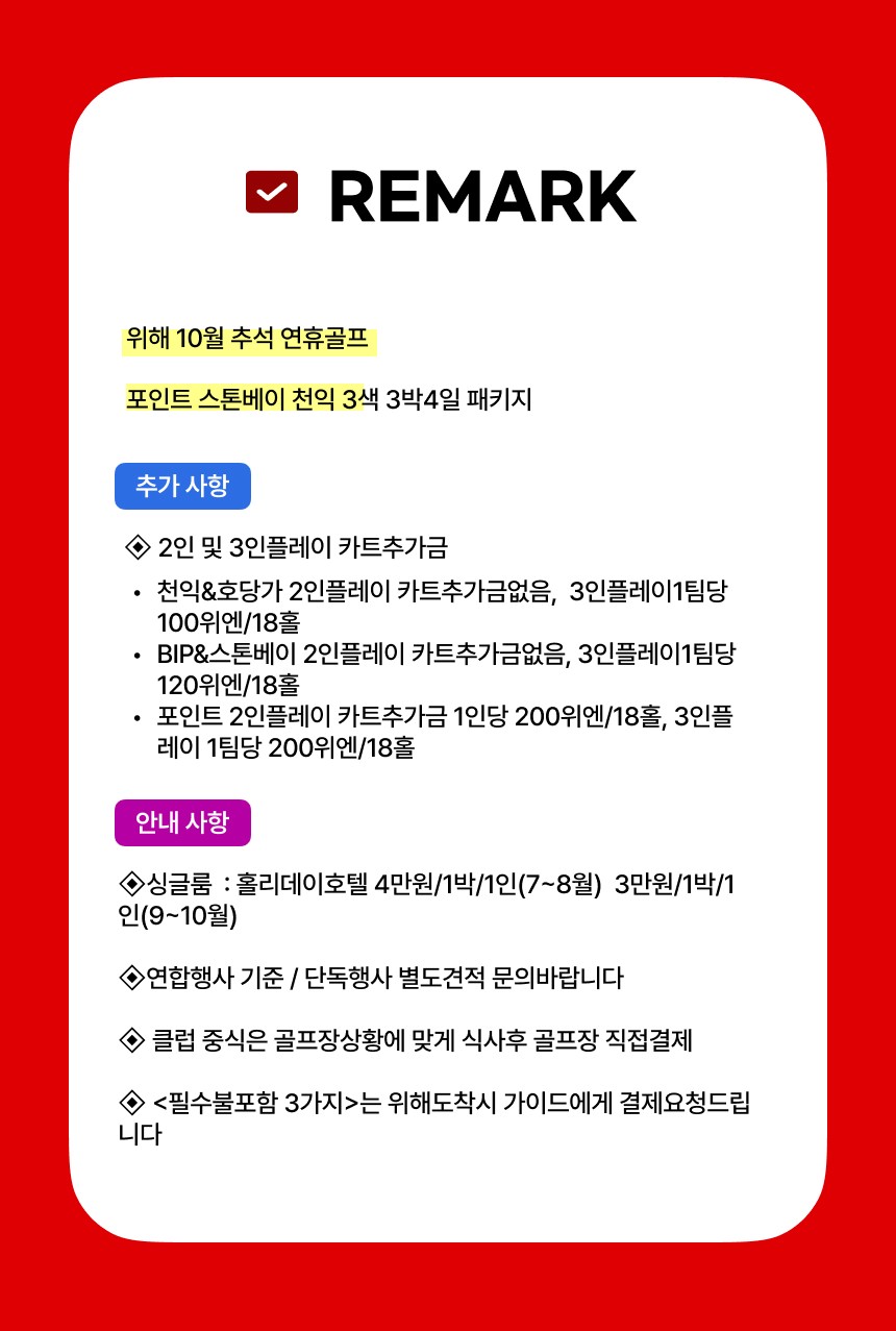 🔔 웨이하이포인트 3색 & 포인트 리조트 체류형상품 !!