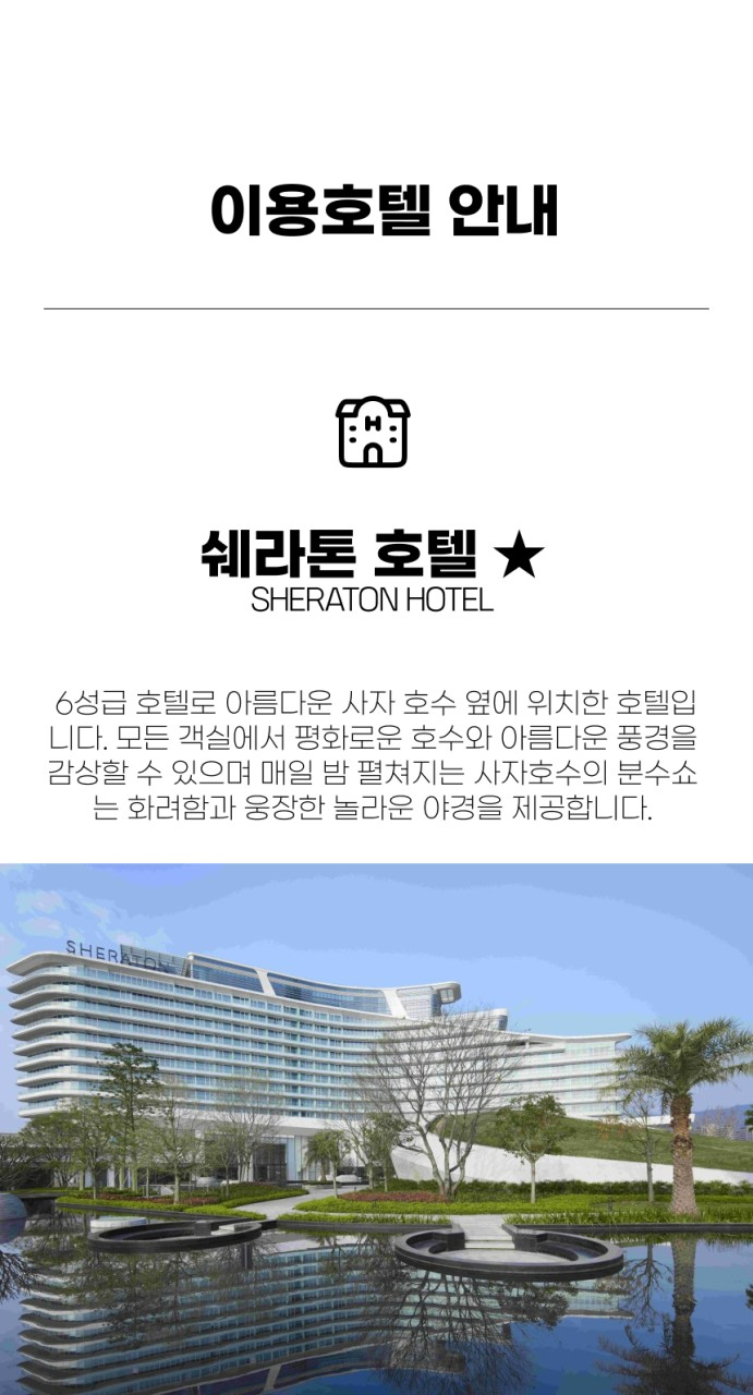 ✔️홀리데이인 호텔싱글룸차지는 5만/박/인 / 쉐라톤호텔은 6만/박/인 추가 입니다.