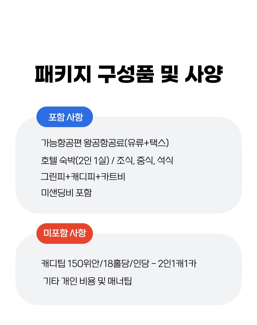 ✔️첫날 항공지연이나 일몰 등으로 18홀을 다 못 치셔도 환불 없습니다.