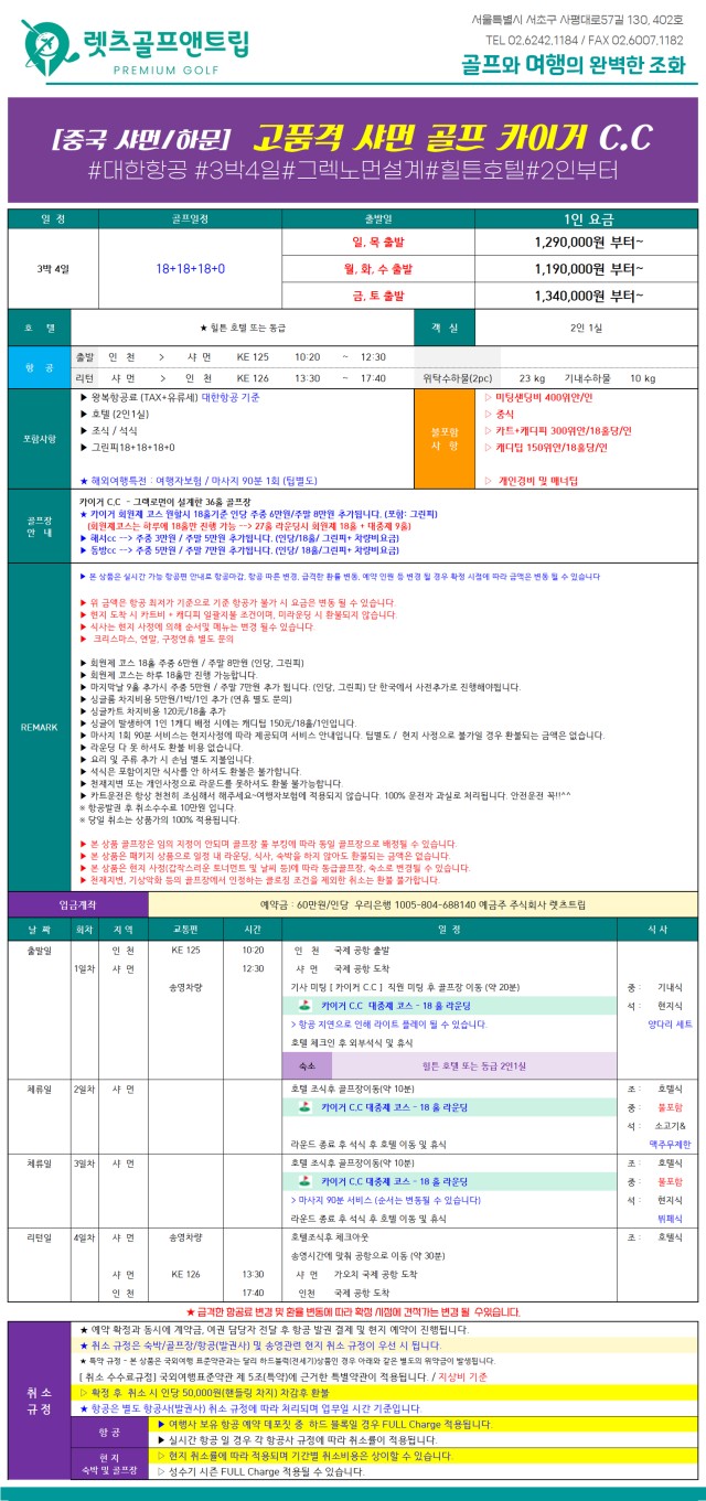 ■ 현지 도착시 카트비+캐디피 일괄지불 조건이며, 미라운딩시 환불되지 않습니다.