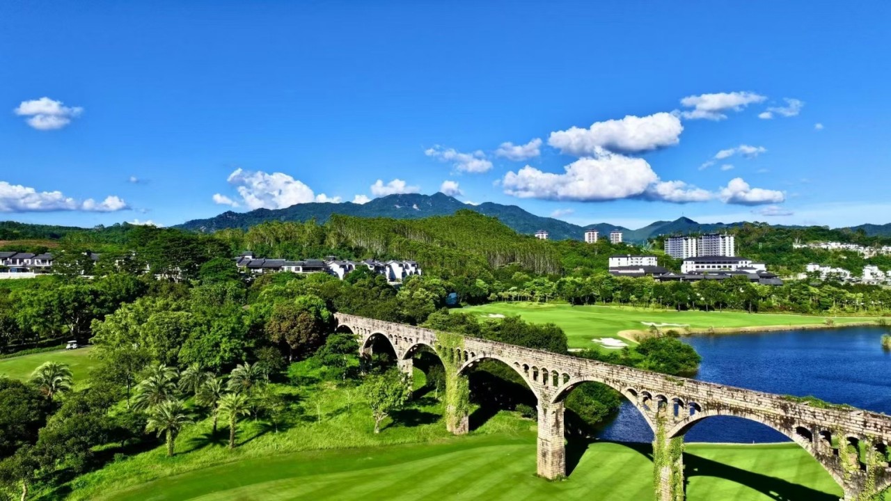 해서CC 시그니처 홀입니다. 페어웨이 한가운데 돌다리가 있는데 뷰가 너무 멋집니다.
