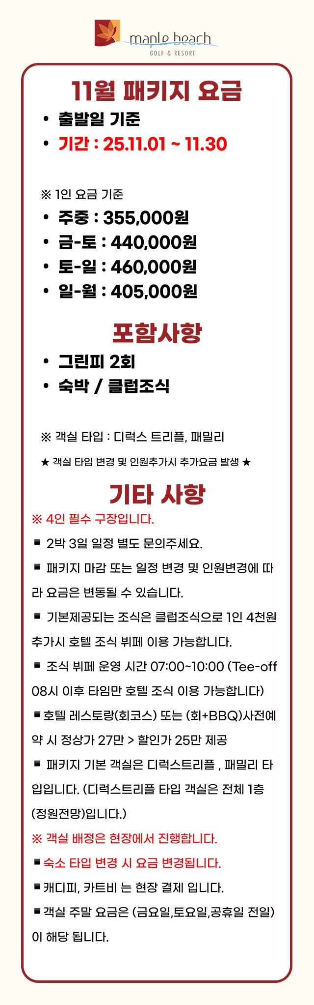 ⚜메이플비치 숙박 : 디럭스트리플 (2인1실) / 패밀리 (4인1실)