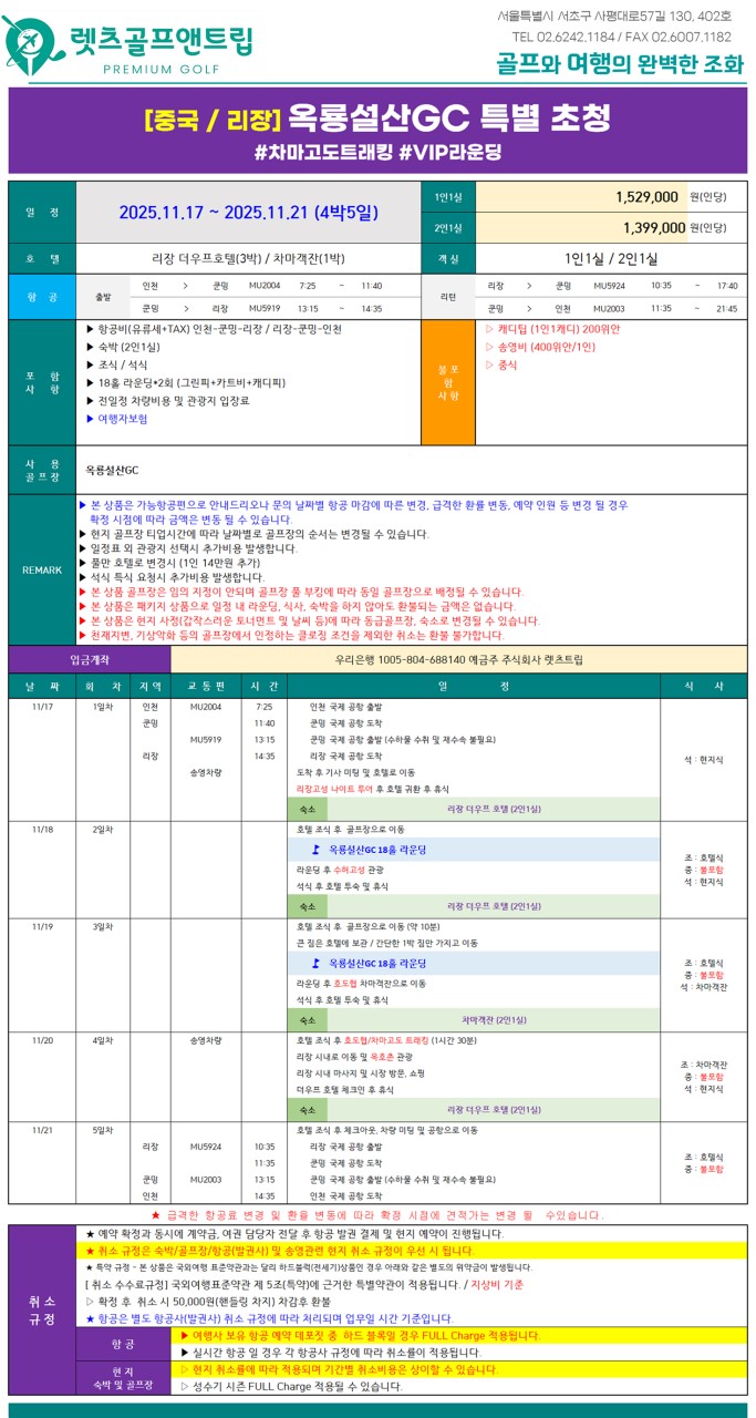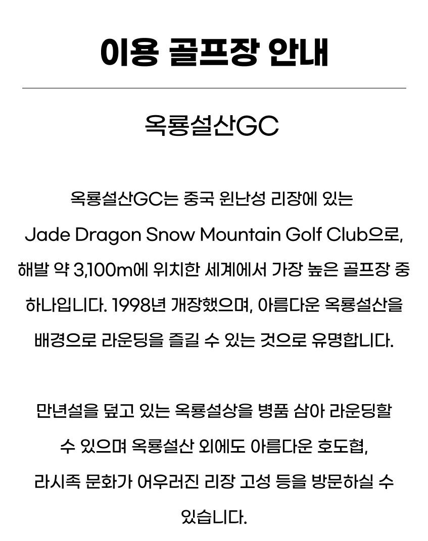 중국/리장 옥룡설산GC 특별 초청 11월 4박5일패키지