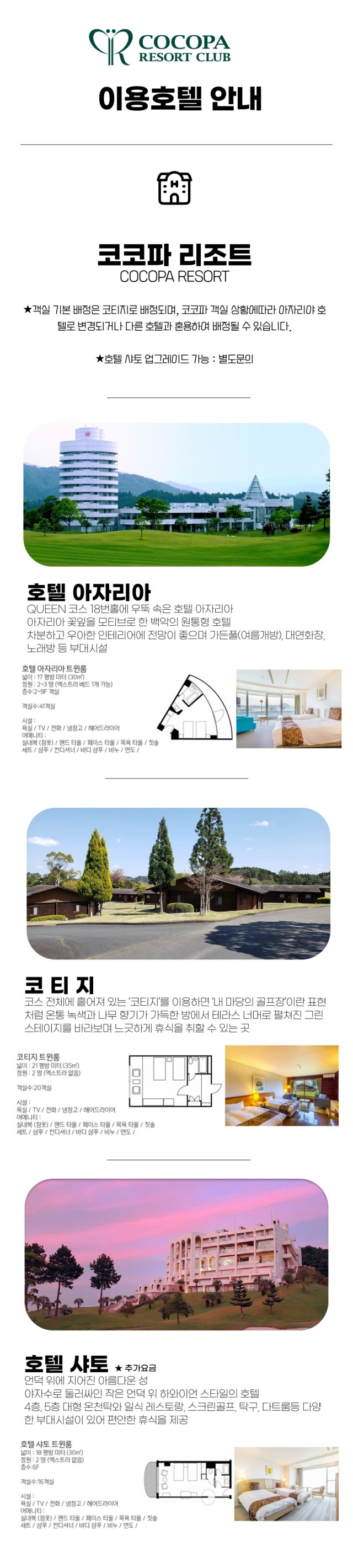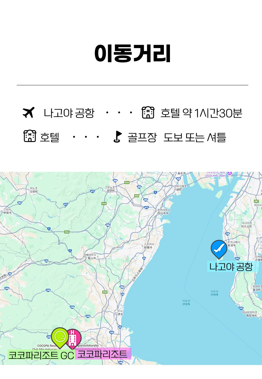 1) 나고야 명문 대표 골프장인 코코파 리조트 내 아자리아 호텔 or 코티지 빌라