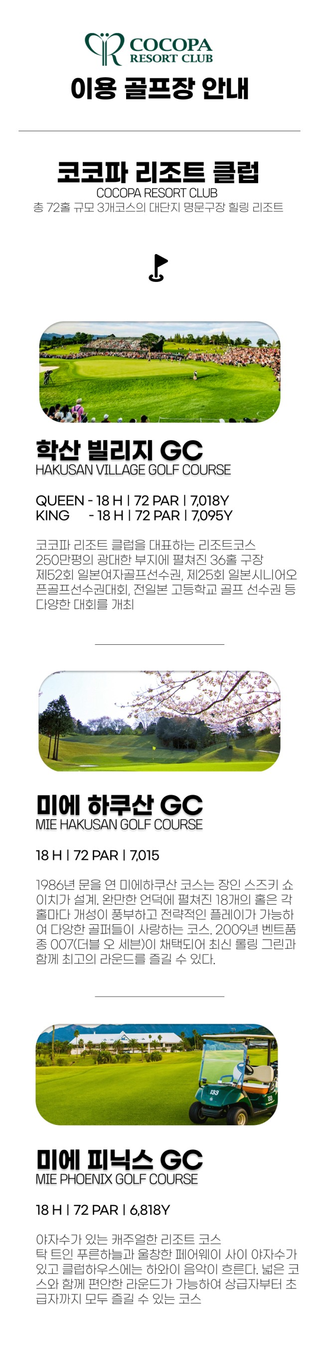 2) 코코파 리조트 내 매일 다른 코스에서 다색라운드