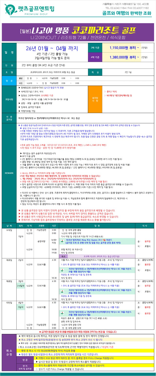 🔊나리타 휴양형 리조트 나고야 코코파 리조트 26년 요금 1월~4월