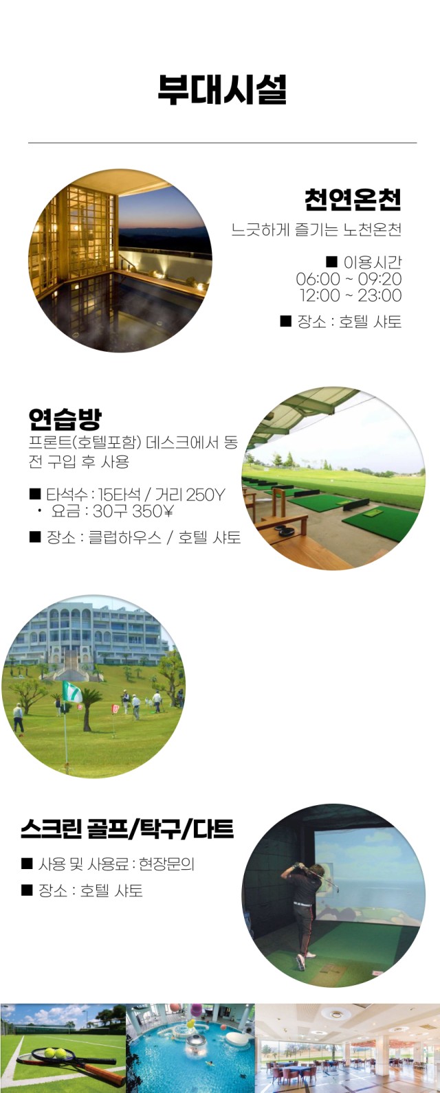 4) 라운드 후 리조트에서 일본 3대 명천인 '사카키바라 온천'과 다양한 부대시설로 힐링