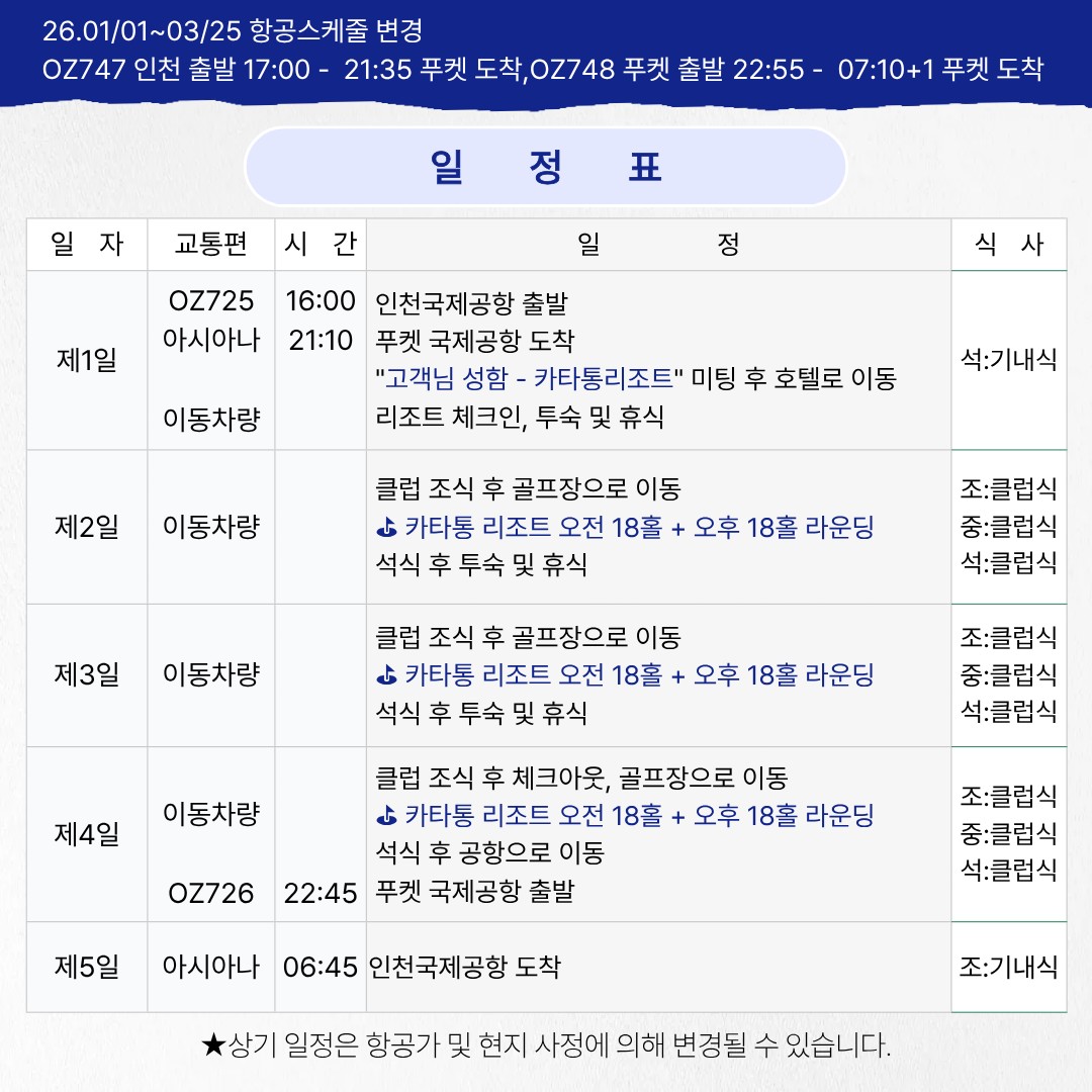 태국/푸켓 카타통 골프 12-3월 3박5일패키지
