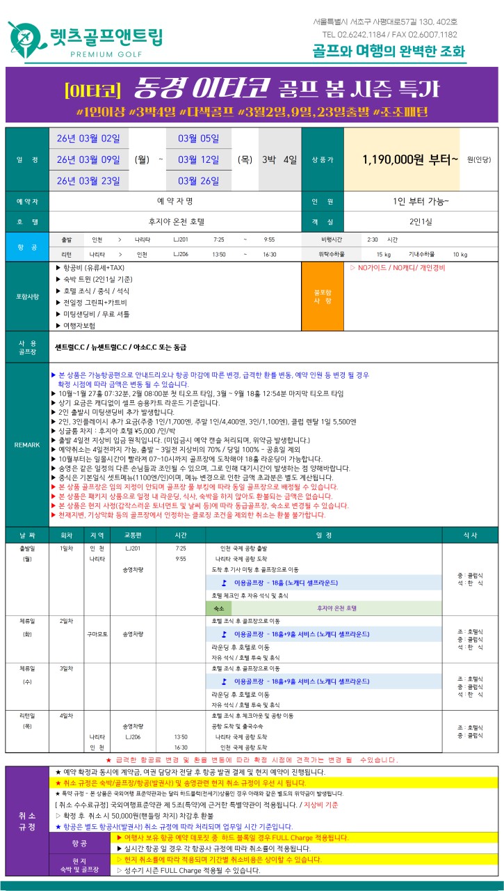 동경 이타코 골프 특가를 진행합니다.