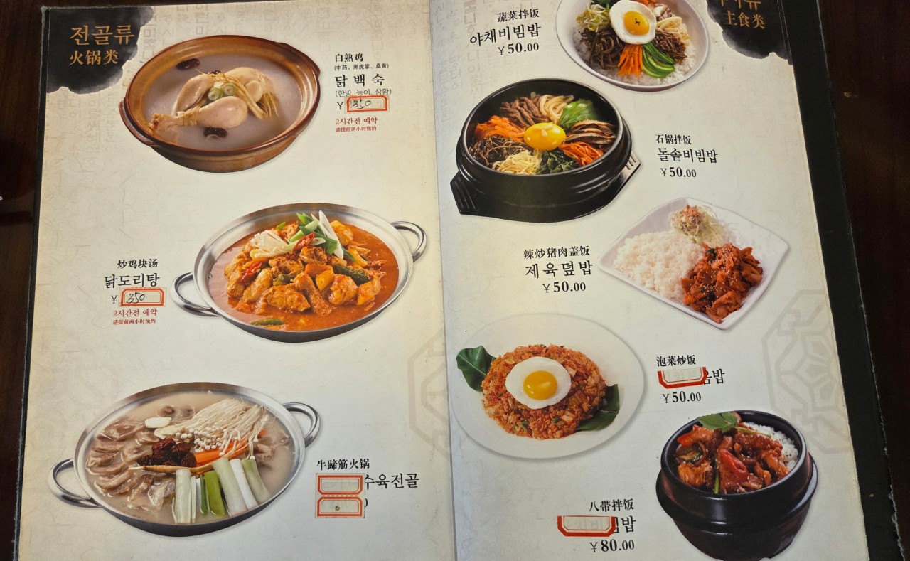 > 조식,중식 (50위안기준)
