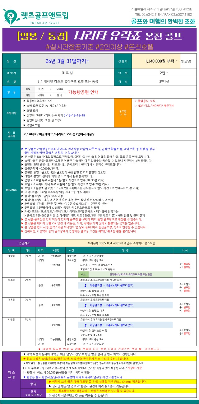 ⛳️동경 치바 유락죠 온천 골프⛳ 💕<3박4일>