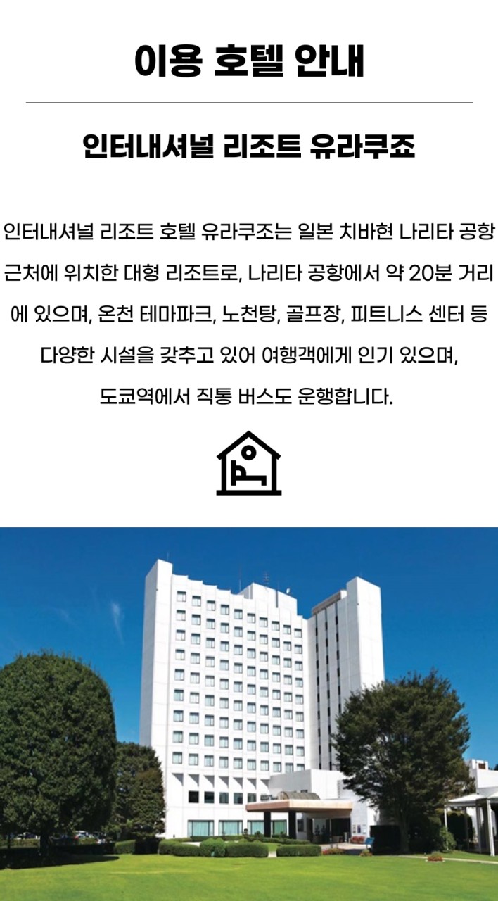- 호텔<->나리타 시내 무료 셔틀버스는 별도 시간표로 안내(20분 거리)