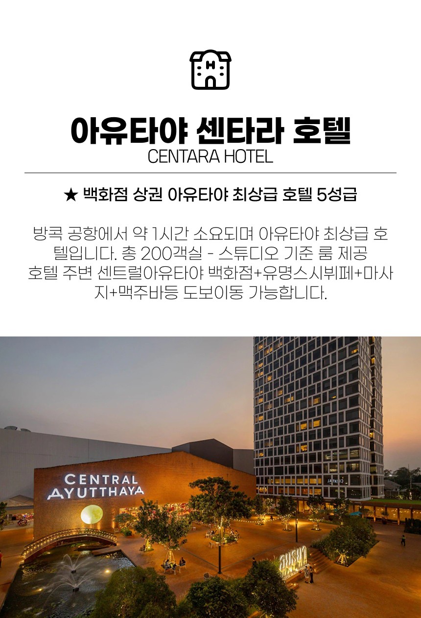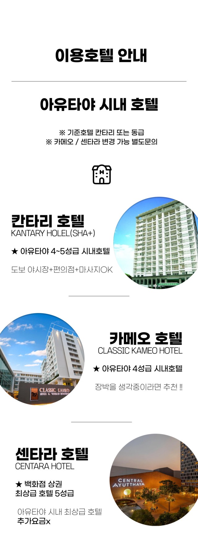 : 시내호텔 카메오(장박OK) 또는 5성 센타라 호텔 변경 가능