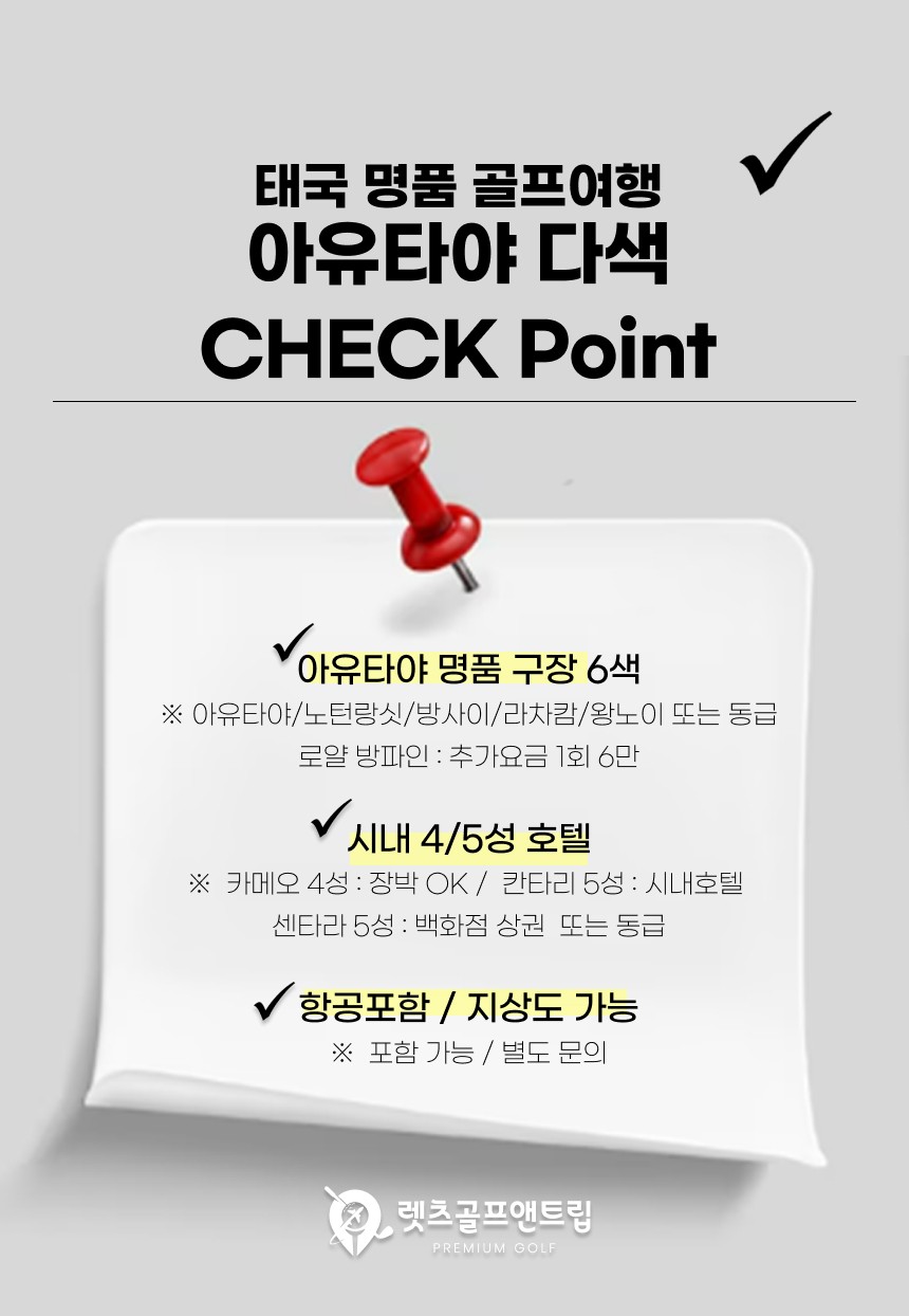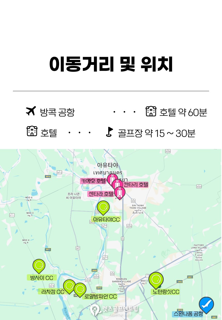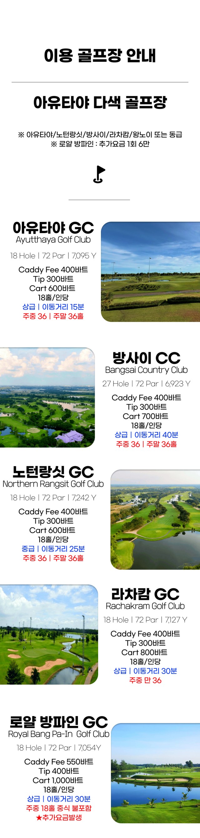 ✔️ 아유타야 / 노턴랑싯 / 방사이 / 라차캄 등 중급 이상 골프장
