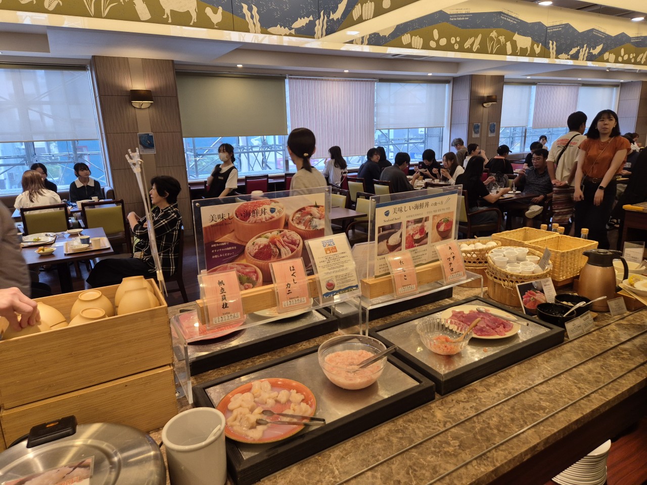 북해도의 맛있는 매력을 찾아볼수 있는 조식.