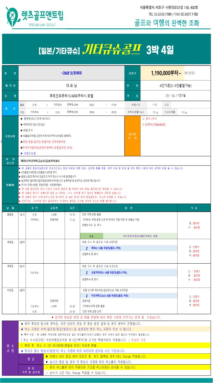 ✴️기타큐슈 명문2색/3색골프+한국인직원안내✴️
