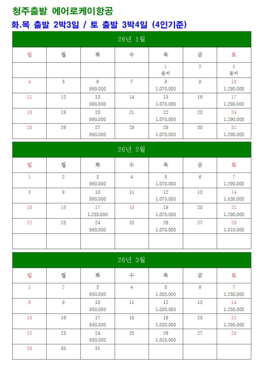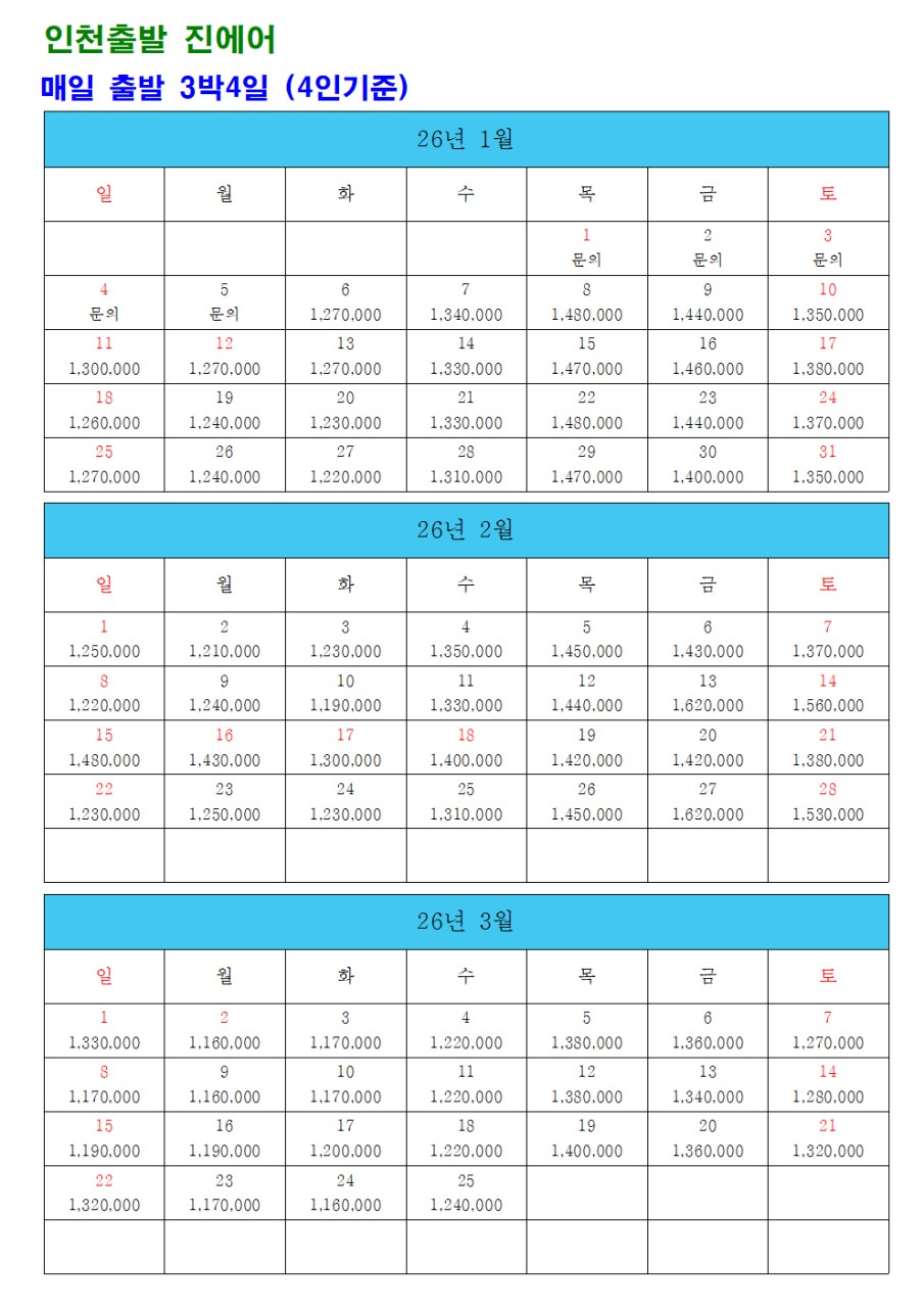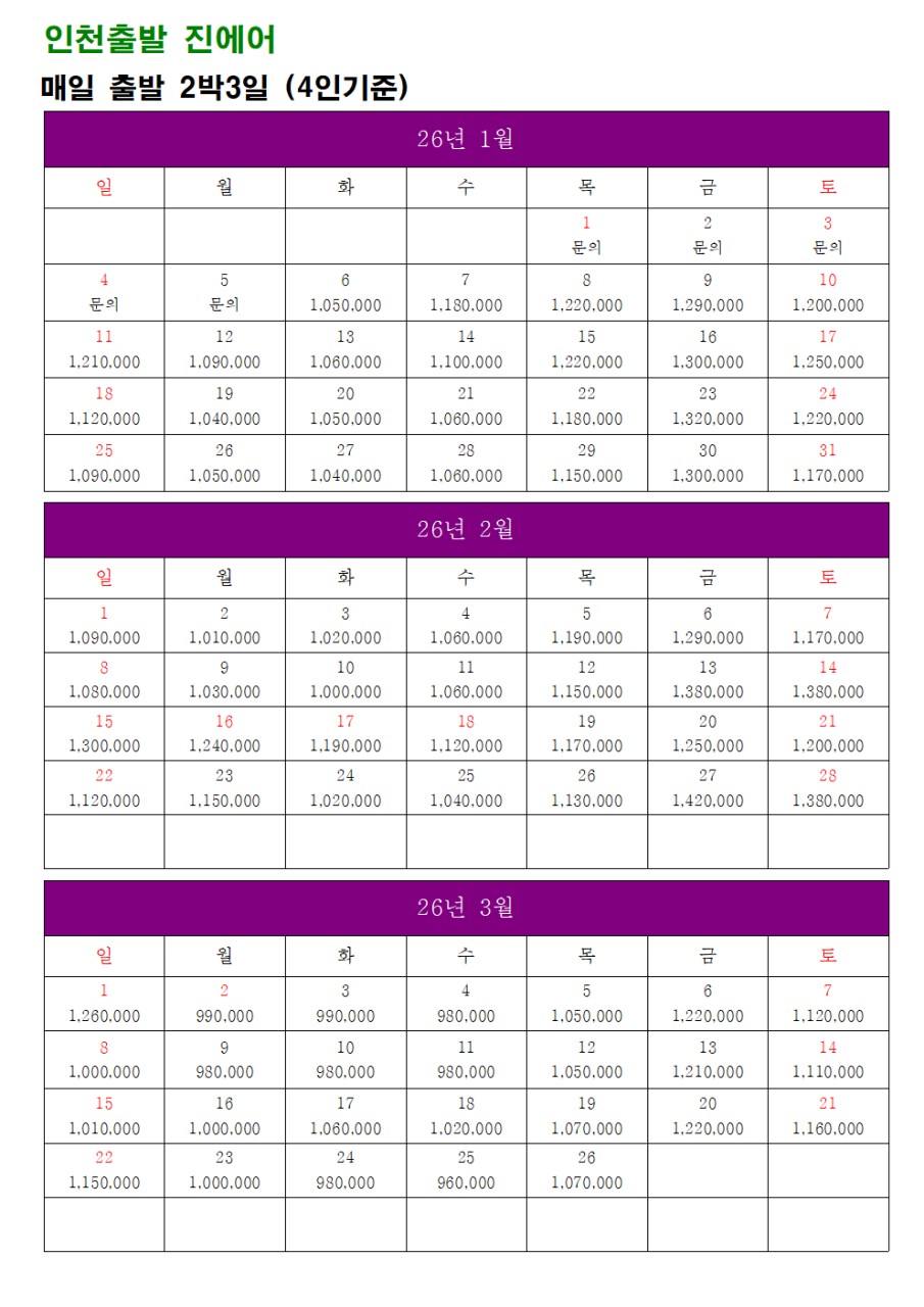 🗓26년 1월 1일부터 매일출발(인천출발-진에어)