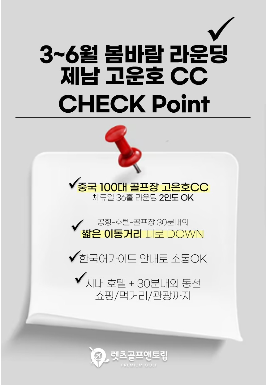 📢 [3월~6월 봄특가] 제남 고운호CC+윈덤호텔 항공팩 OPEN!