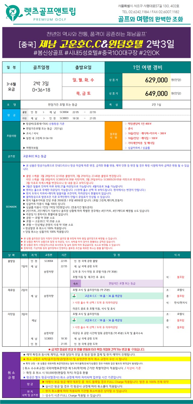 ▶️26년 제남 무제한 라운딩! 3월~6월 출발, 2박3일 일정