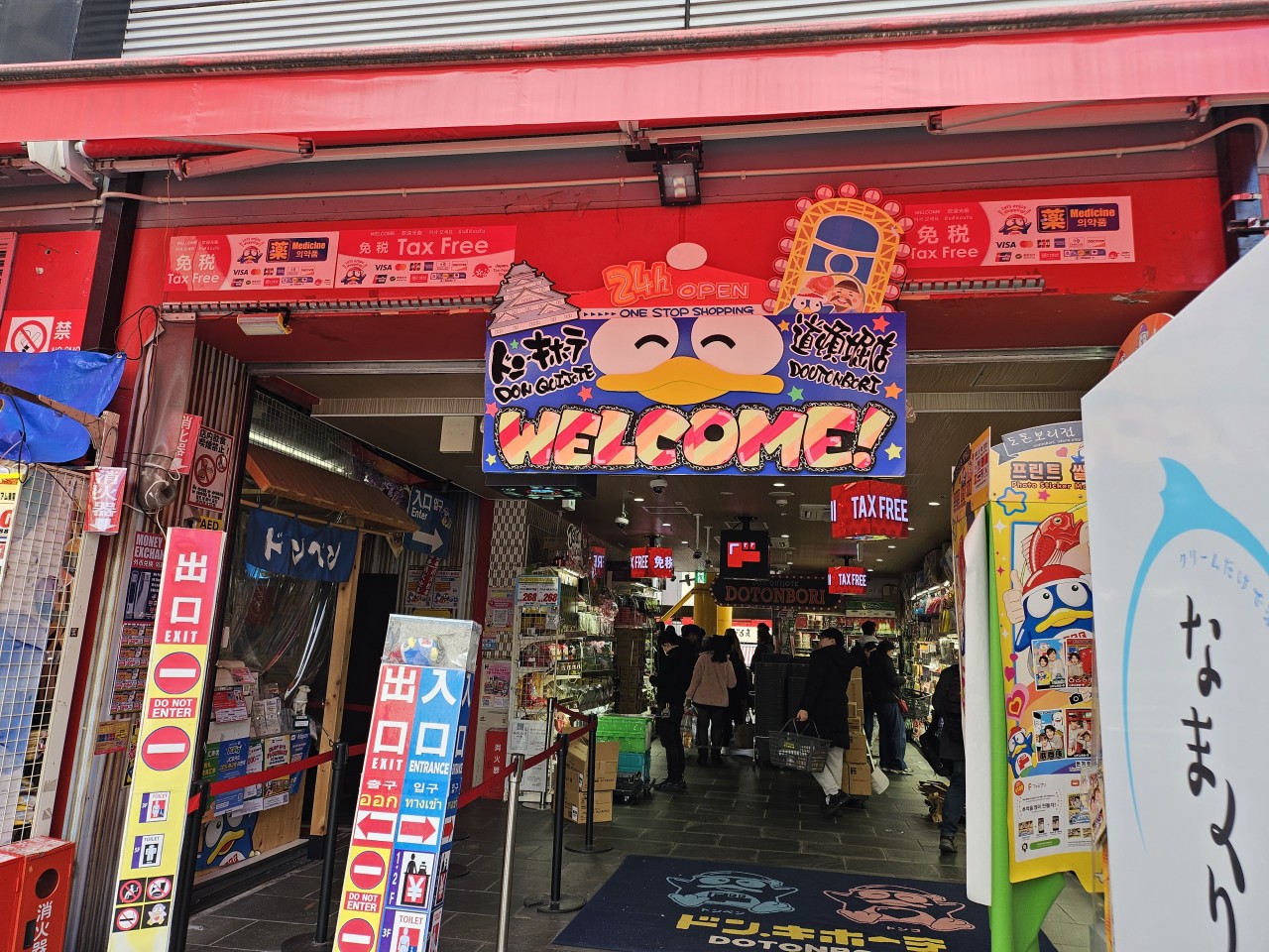 돈키호테는 식품, 과자, 주류, 화장품, 의약품, 잡화까지 한 번에 쇼핑할 수 있는 대형 할인 매장으로, 도톤보리 관광 동선에 자연스럽게 포함되는 필수 코스입니다.