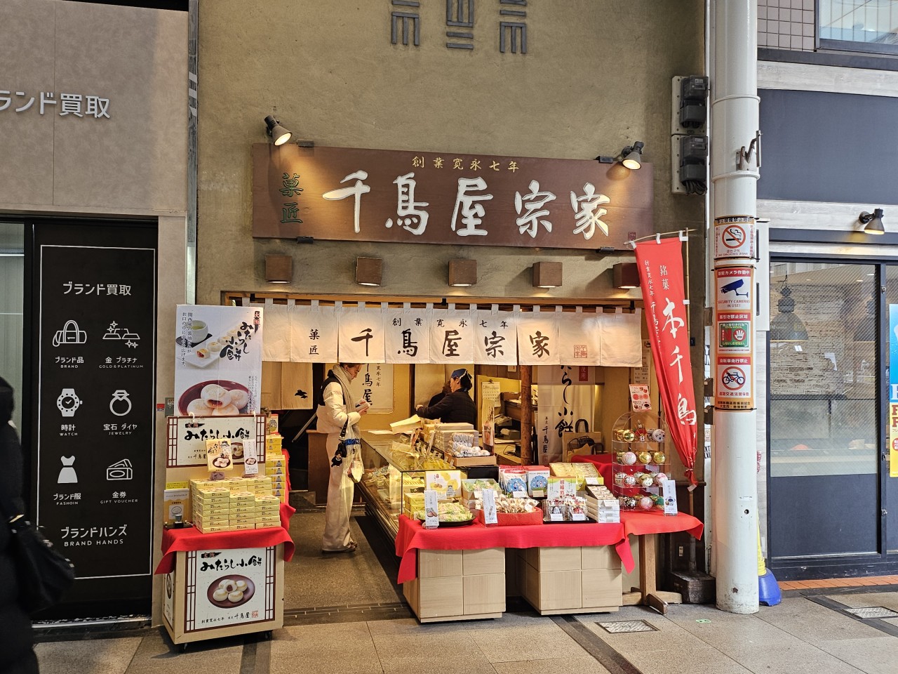 구로몬 시장에 진입하면 양 옆으로 여러 가게와 볼거리가 펼쳐집니다.