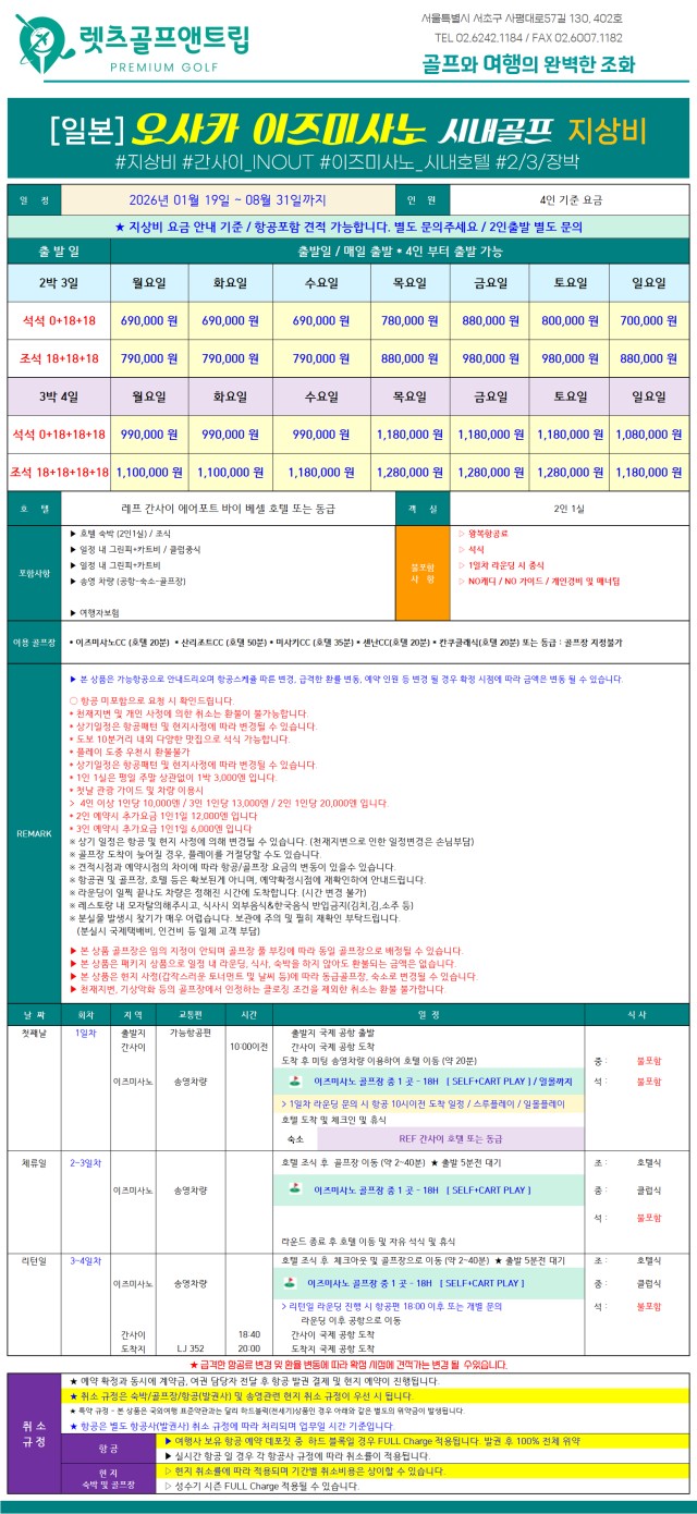 - 오사카 품격 골프 특가 2박3일 · 3박 4일