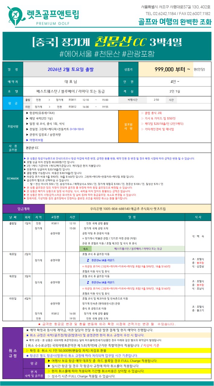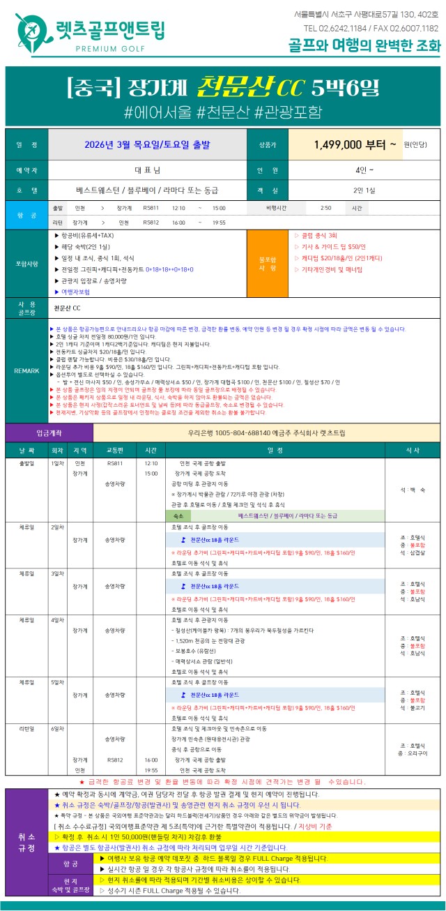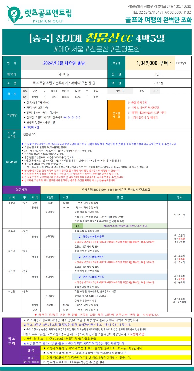 ⛳️✨ 중국 장가계 직항 골프 항공팩 ✨⛳️