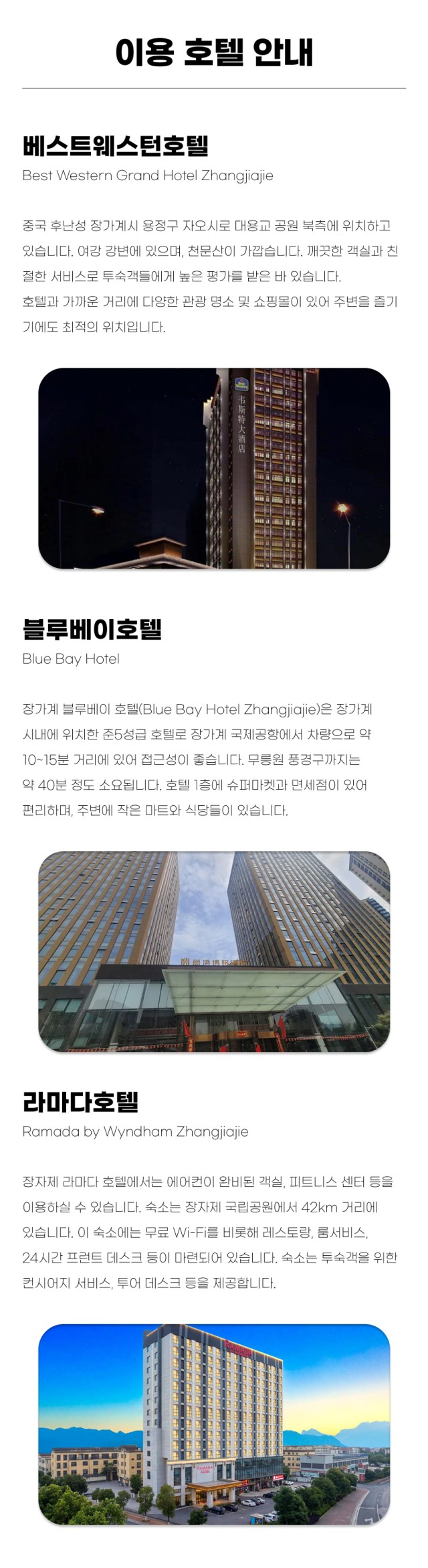 🏨 호텔 : 베스트웨스턴 / 블루베이 / 라마다 또는 동급 호텔 (2인 1실)