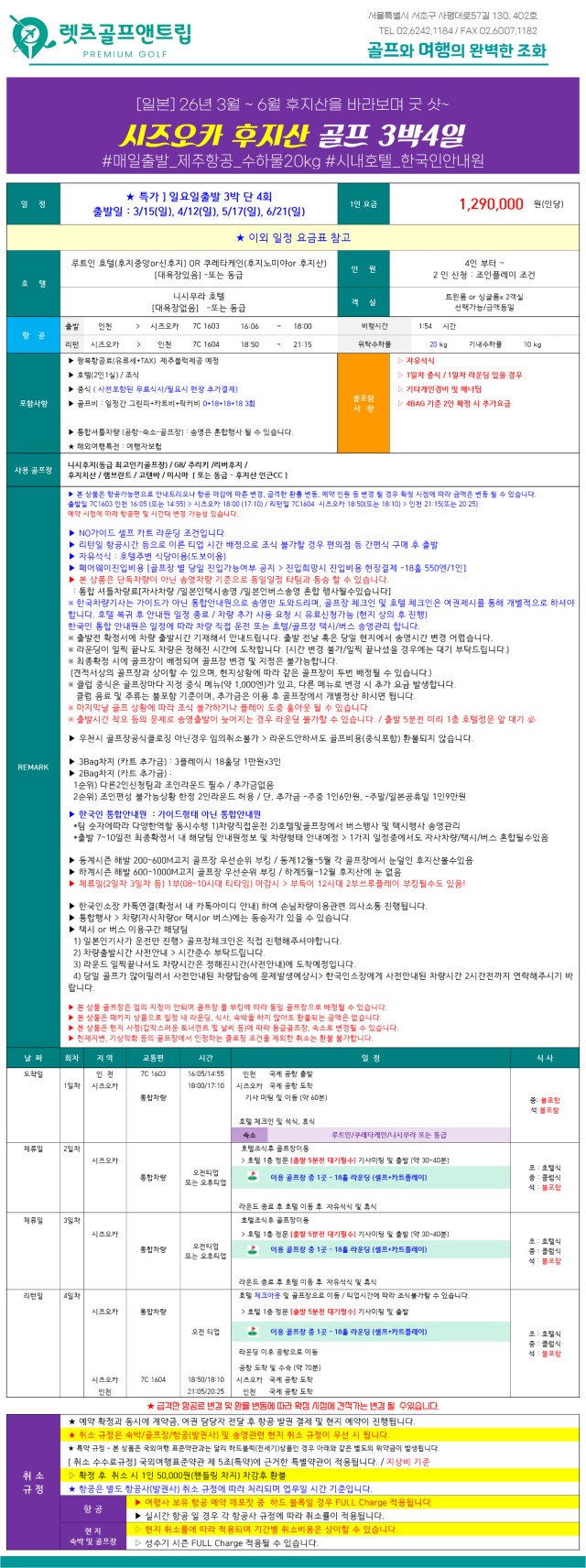(날씨 및 잔디컨디션에 따른 조치 / 가능 시 진입비용 별도 현장결제 18홀 5,500엔)