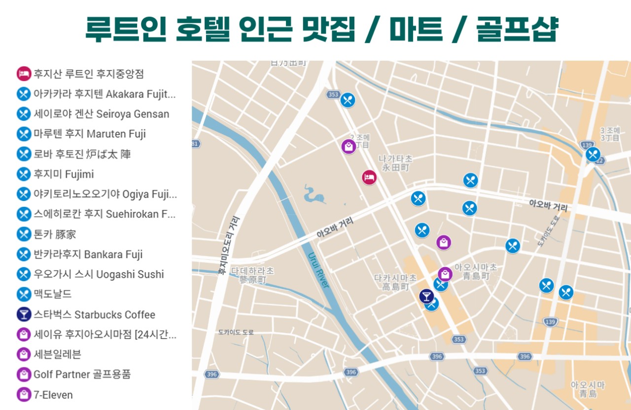 🔔 루트인 호텔 인근 맛집 / 마트 / 골프샵 🔔