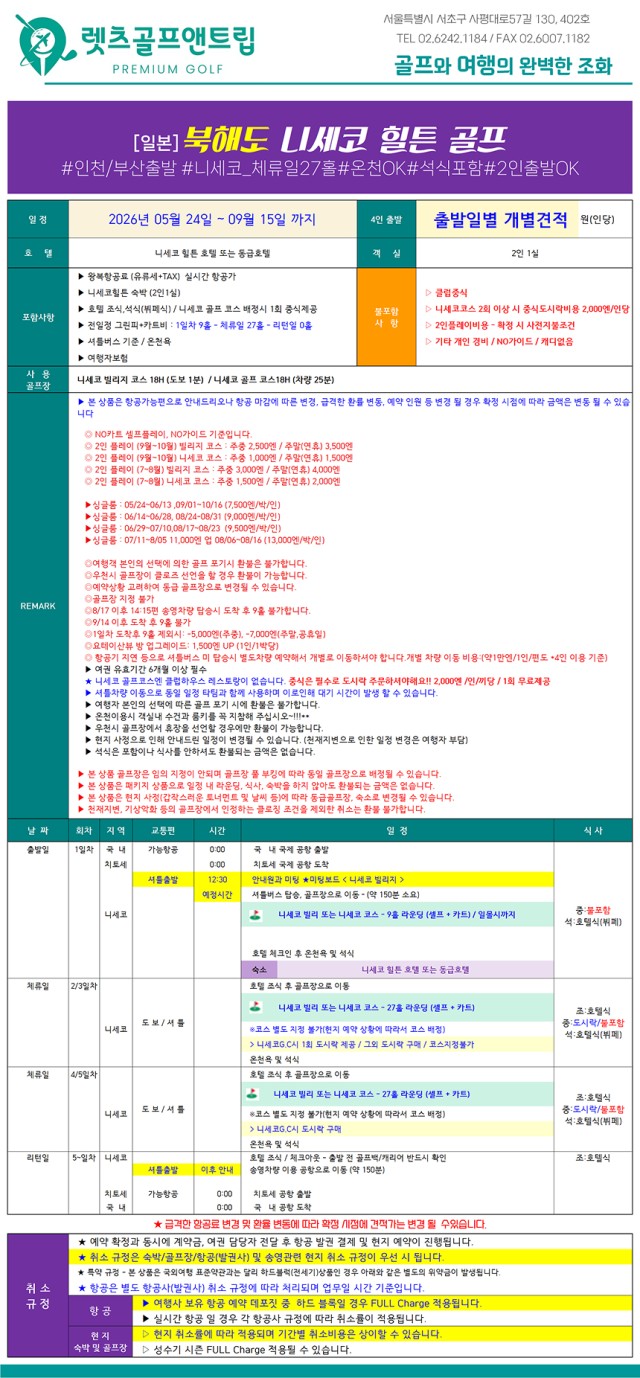 ❤북해도 최고 인기지역 니세코 골프