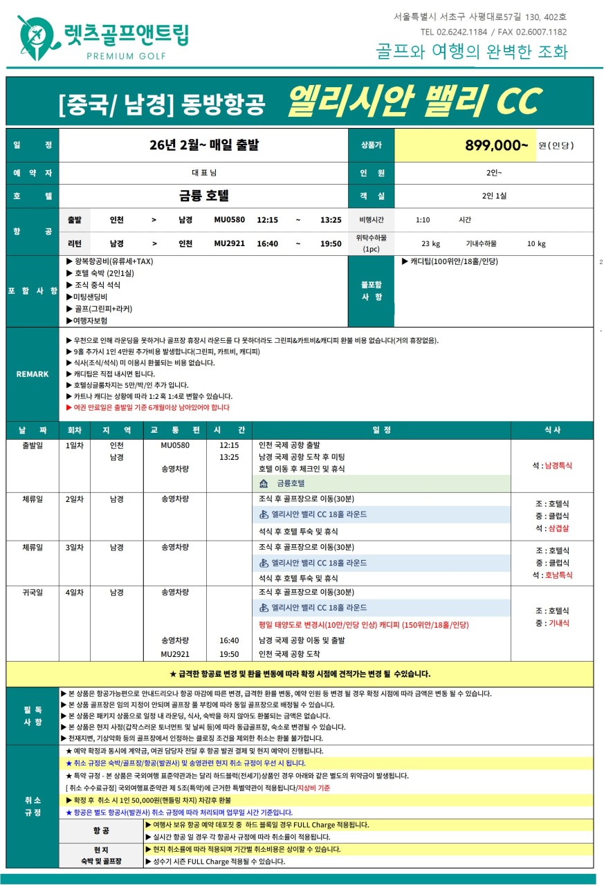 🌟[올포함] 남경 엘리시안밸리cc 3박4일🌟