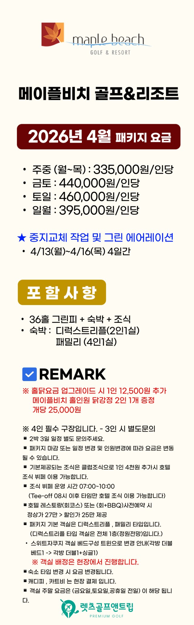 💕 메이플비치 2026년 4월 골프 패키지💕