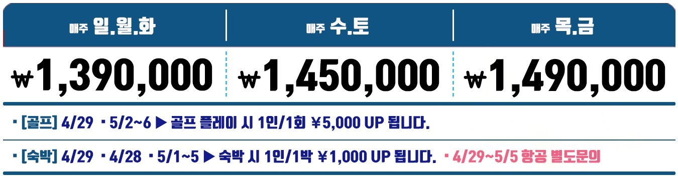 ▪ 골프 : 4/29, 5/2~6 : 1인/1회 ¥5,000 UP