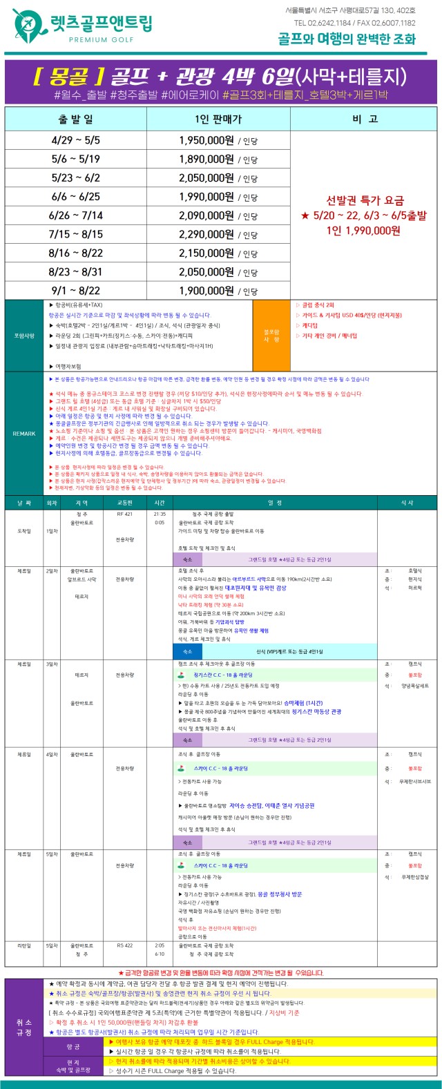 몽골여행 울란바토르 2색골프&관광 26년 5~9월