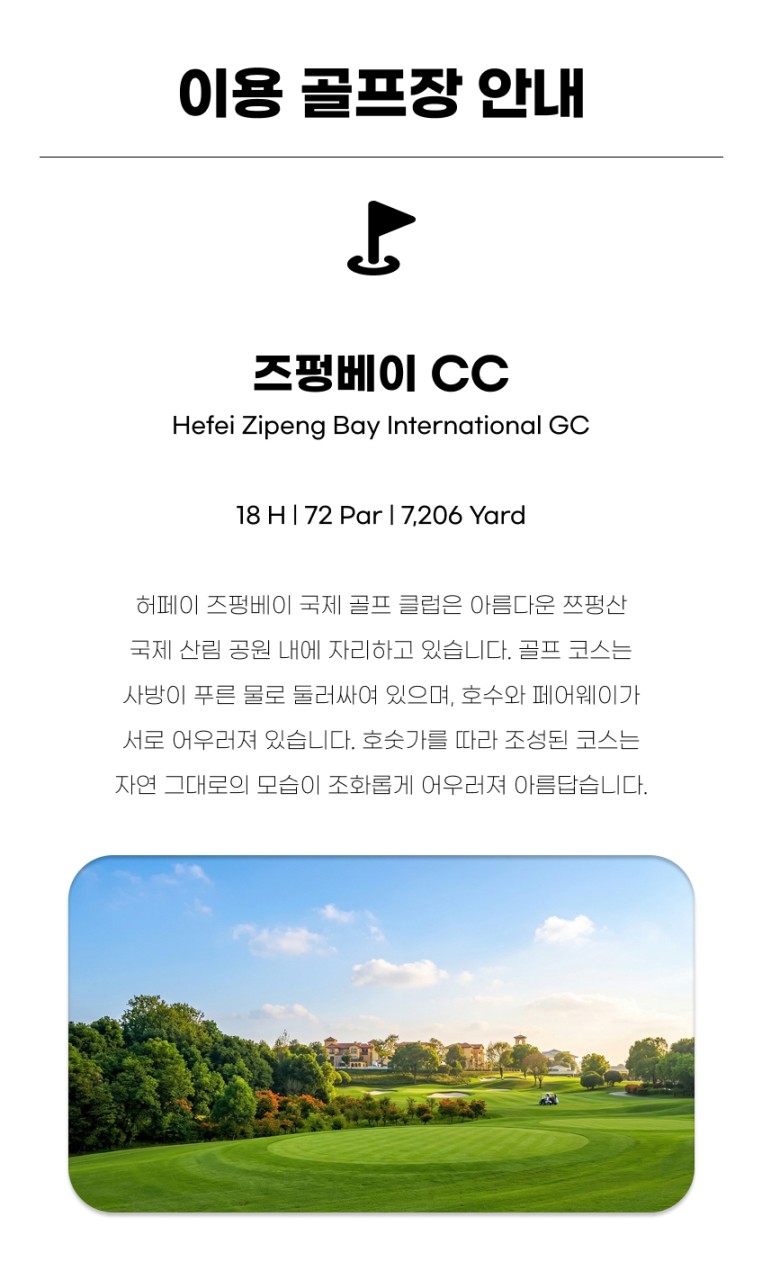 ✔️명문 골프장 즈펑베이 포함 !!