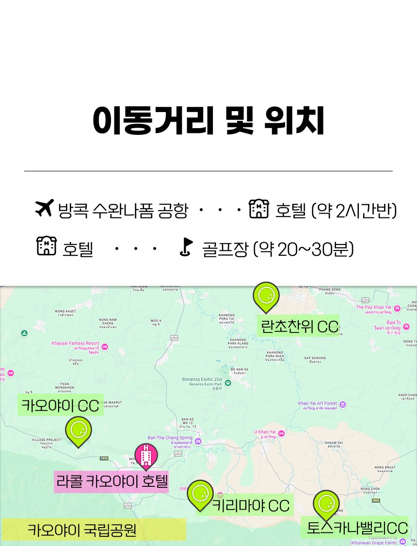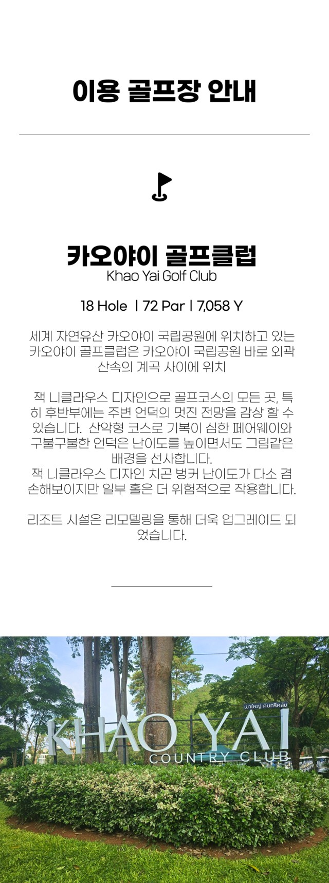 카오야이 골프장들의 위치가 500~800m 지대에 위치 시원한 골프를 즐길 수 있습니다.