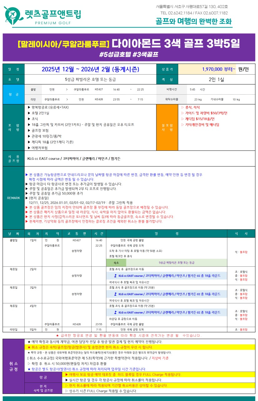 🏆 다이아몬드 3색 골프 – 말레이시아 VVIP 럭셔리 투어 🏆